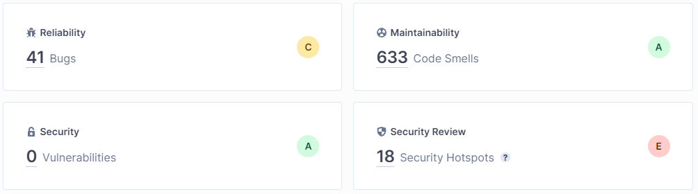 To further prevent me from overlooking some careless design mistakes, I set up a continuous integration chain featuring dependency updates, fully automated testing and an instance of SonarQube to scan my code every time I push code to the repository. Here's some stats on how this changed the source code: